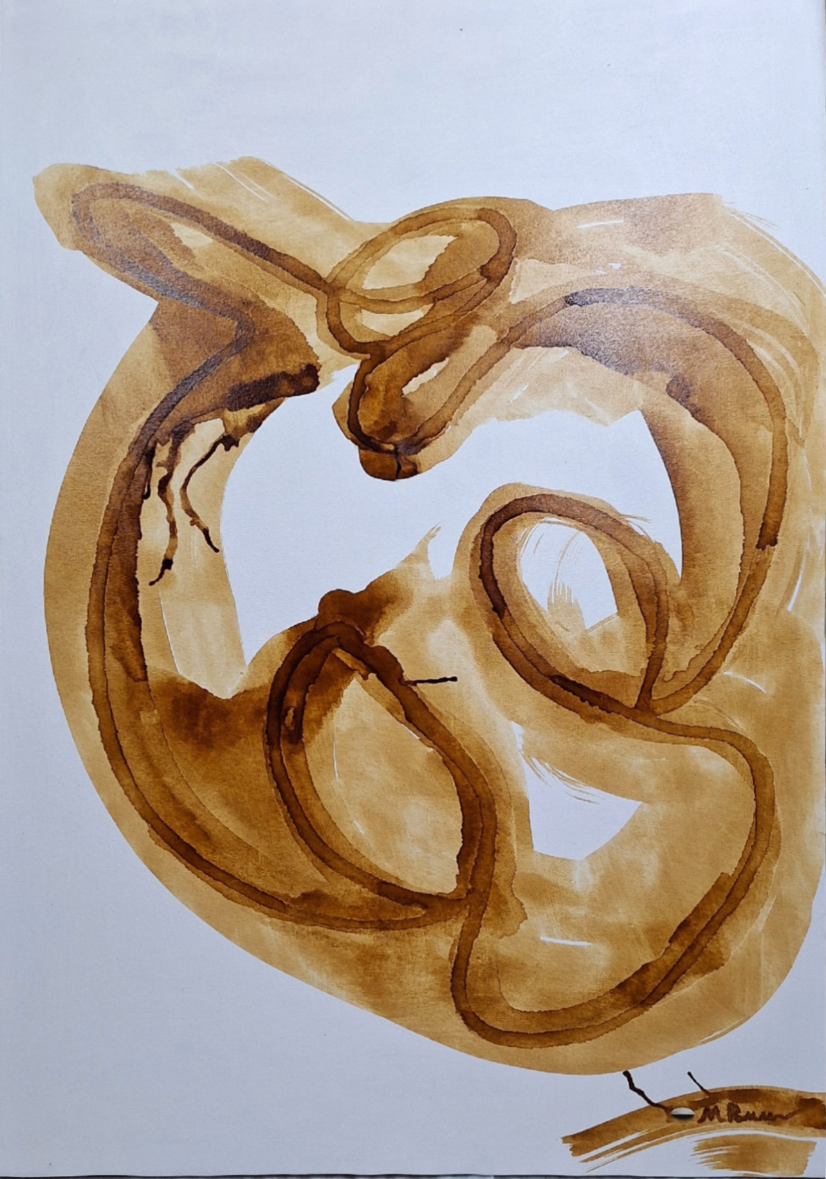 Ponsisme. Понсизм-160 (Портрет Души Галактуса Небесная Собака(Тэнгу) 143х95 см) холст,кофе,перламутр 02.11.25