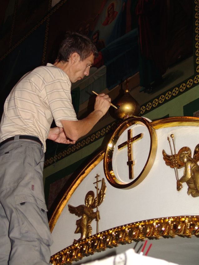 Реставрационные работы по золочению художественного резного убранства иконостаса Собора Успения Божией Матери в г. Атырау (Казахстан). 2011 г.